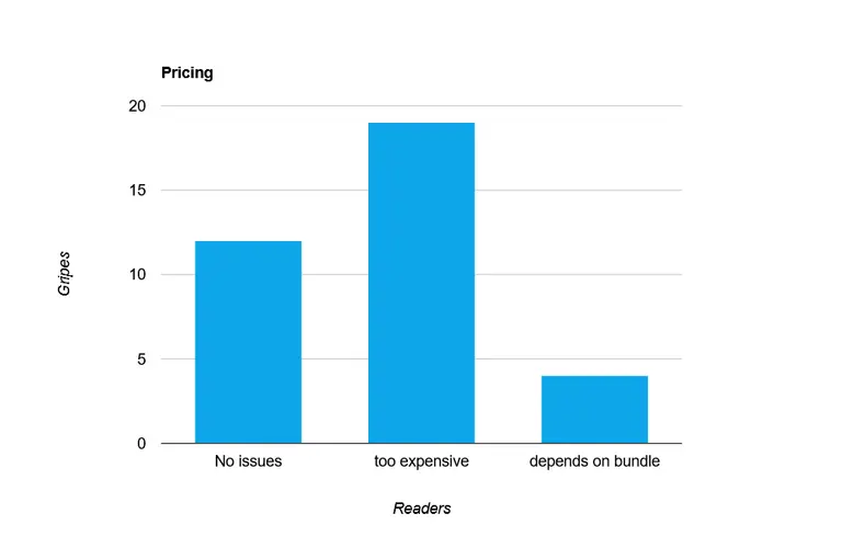 As with any product, pricing plays a huge role in whether readers buy a bundle or opt out. The good news: For roughly a third of respondents (12 people) bundle price played no role in their decision whether to buy a bundle.