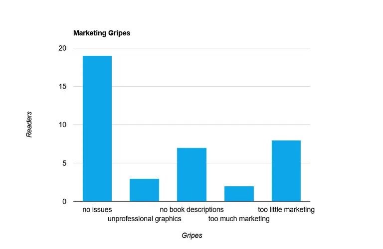As an author, it can quickly feel icky to advertise books and bundles too much, but in reality, only 2 respondents said too much marketing soured them on buying a bundle. Meanwhile, 7 readers had missed out on a bundle, because too little marketing had made them lose track of it.